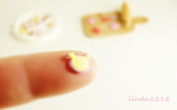 因為要做袖珍餅乾!所以在餅乾上加上奶油,巧克力裝飾!