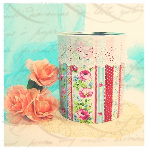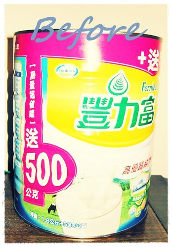 工作桌上一直缺少一個放小紙屑的垃圾桶,加上奶粉剛好也泡完了!理所當然拿來拼貼裝飾再利用