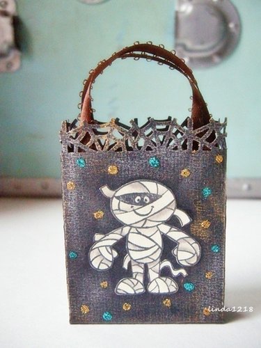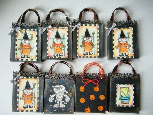 花了些時間蓋印上色做萬聖節小紙袋袋身用鬆餅粉紙盒改的做了四款紙袋再做一張簡單的Happy Halloween小卡放到袋子裡簡單的改造你也可以廢物利用自己DIY唷若有需要迷你提袋紙型!請引用文章後留下email