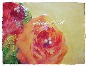 如下圖玫瑰花加上亮膠後(也可加亮粉)